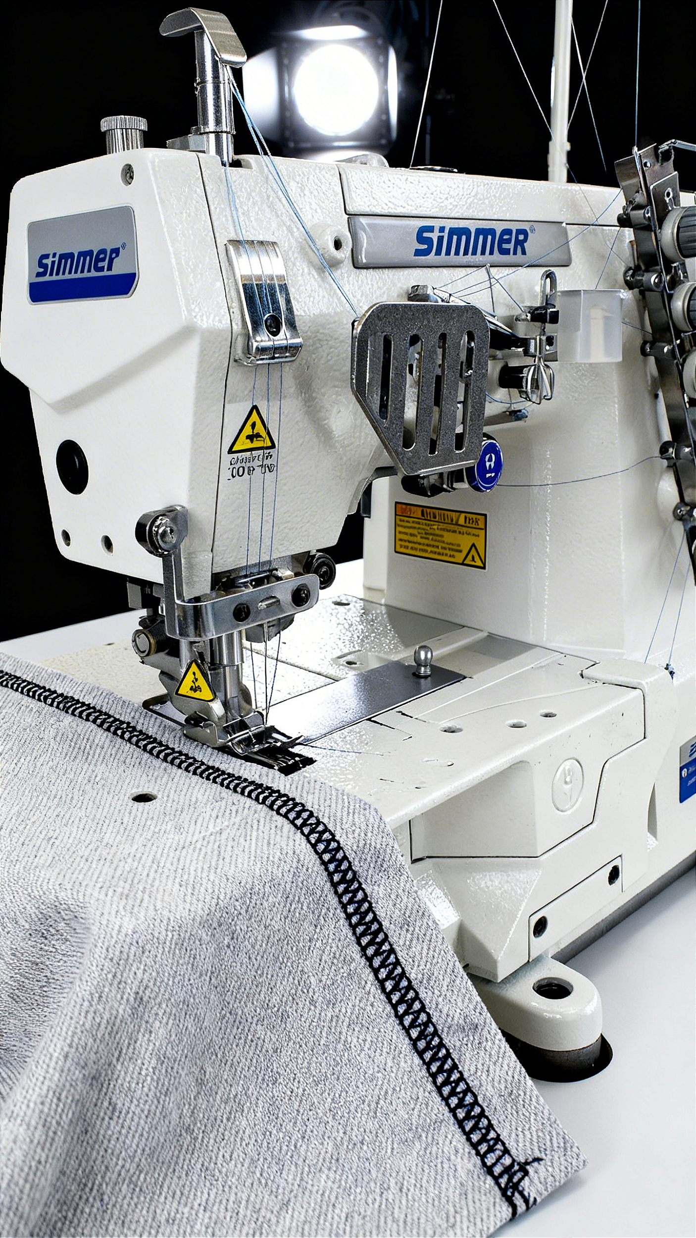 A SM-3500D-SM-01CB-P é uma máquina de costura galoneira eletrônica base plana fechada desenvolvida pela Simmer para oferecer alta produtividade, precisão e acabamento impecável em coberturas e bainhas.